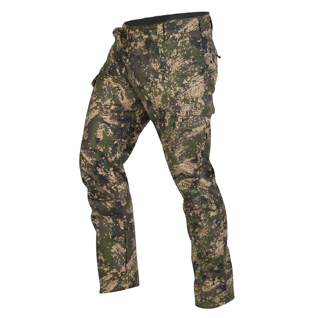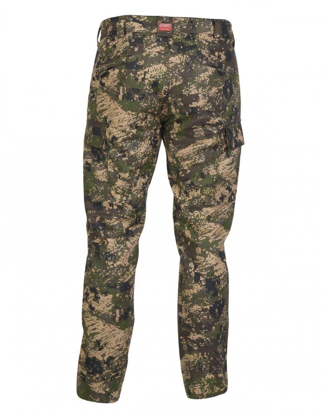 HART IBERO-T XHP are hunting trousers with Pixel Forest camouflage, designed for comfort and concealment in dry conditions. They are made from durable ripstop fabric with a 6-pocket construction – 2 slanted pockets, 2 side cargo pockets, and 2 rear zippered pockets.