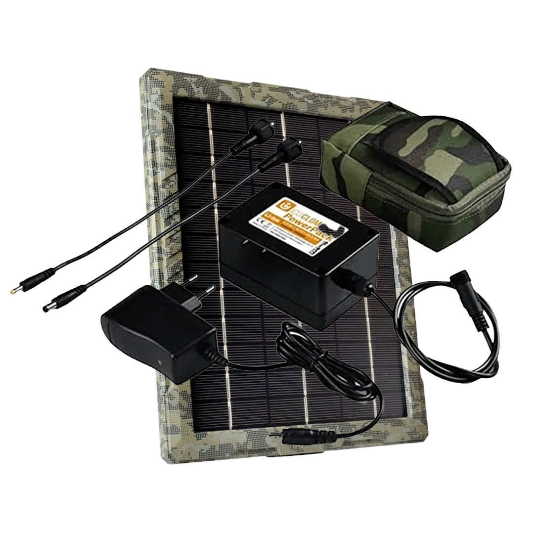 The ICU CLOM PowerPack external battery provides more than 3 months of operating time for your trail camera. It is a rechargeable Li-Ion 5000 mAh battery that is water and weather resistant. The package includes a charging cable and a camouflage protective pouch. A standardized connector allows it to be used with almost all trail cameras.
