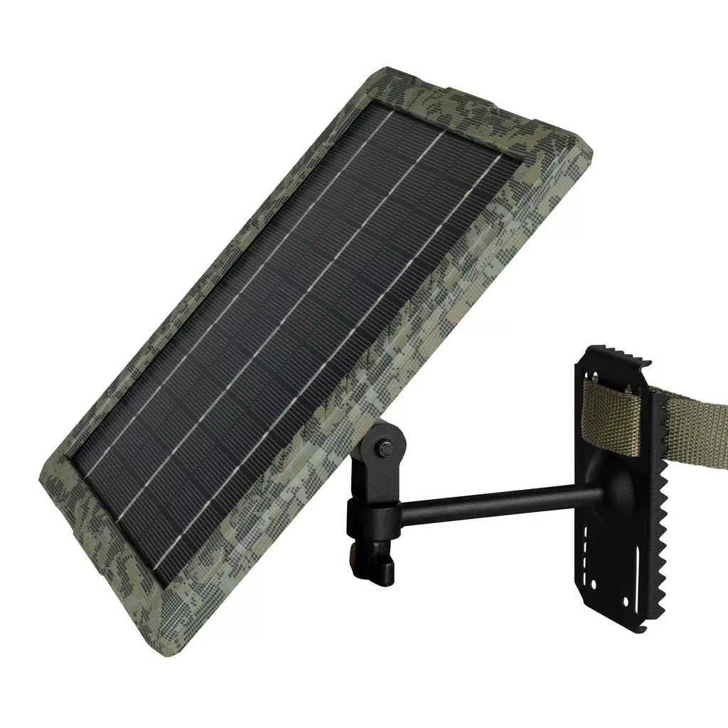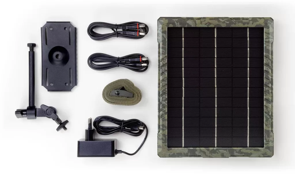 Optimized solar panel for mobile trail cameras. The package includes a mounting bracket for the solar panel and a tree strap. Charging connection cables are included with a sealing ring on the plug: DC5521 / DC5521; 1 meter & DC5521 / DC4017; 1 meter. Almost unlimited operating time.