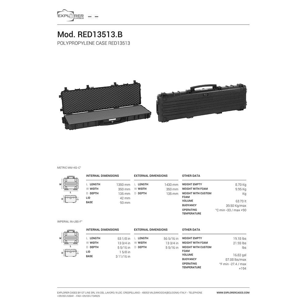 Explorer Cases Mod Red 13513 ir augstākās kvalitātes ieroču koferis ar rūpnīcā iegrieztu putuplasta ielikni, kas nodrošina jūsu ieroča drošību visos apstākļos. Ražots Itālijā.