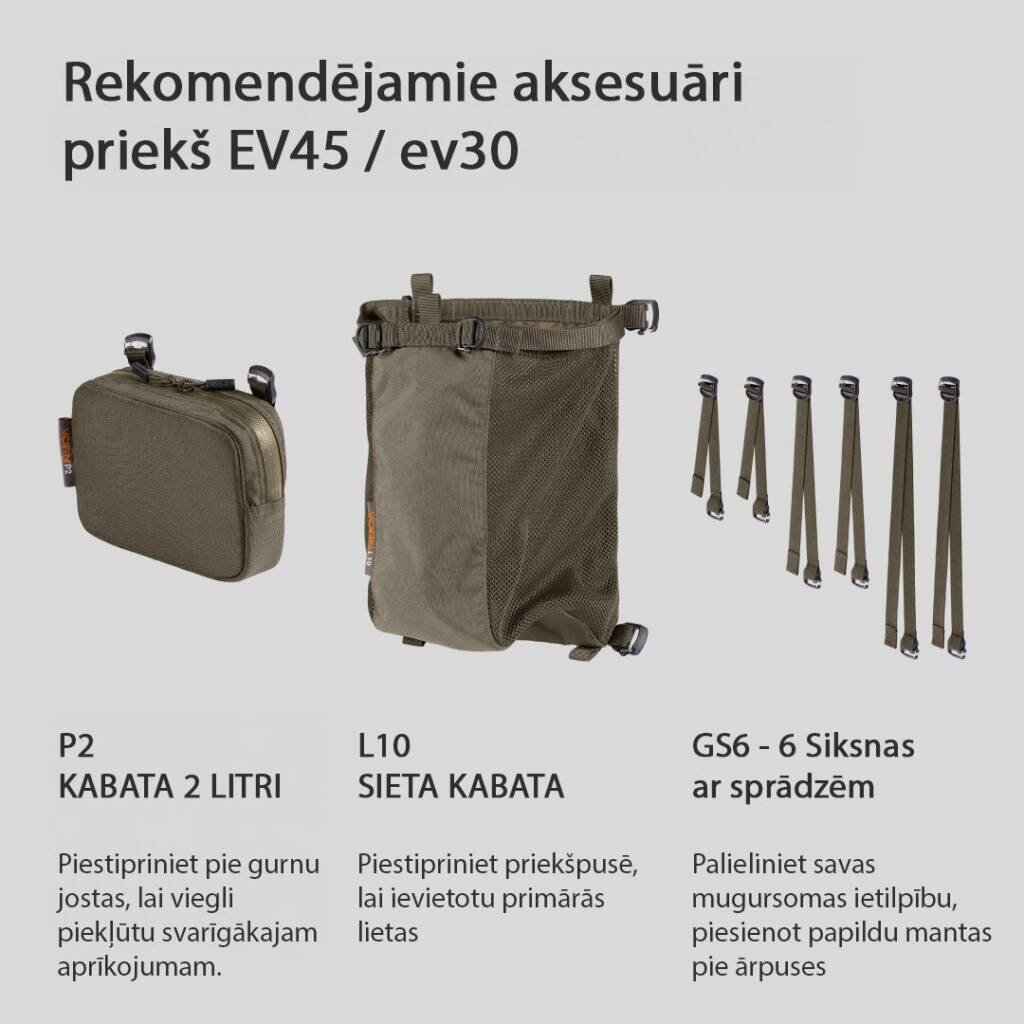 - Daudz siksnas un vietas, kur piestiprināt papildu aprīkojumu.